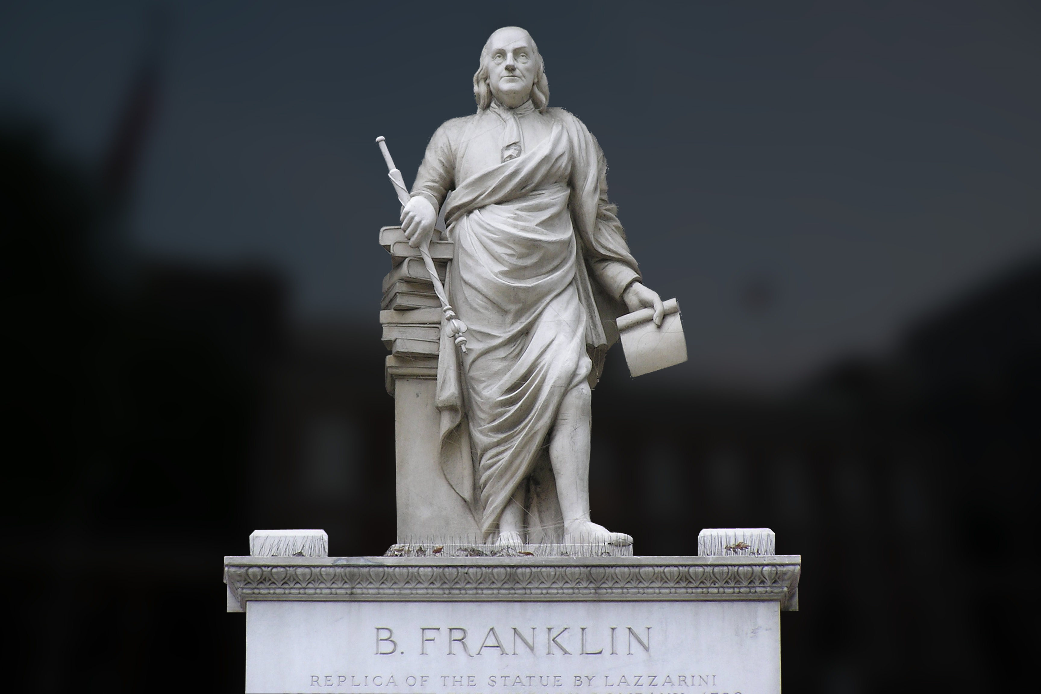 Ben Franklin Statue in Toga